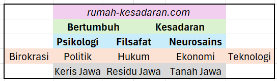 Rumah kesadaran sebagai ruang besar untuk bertumbuh dan berkesadaran, memiliki atensi pada hal yang lebih spesifik yaitu Psikologi, Filsafat, Neurosains, Birokrasi, Politik, Hukum, Ekonomi, Teknologi dan lingkup lebih khusus yaitu peninggalan peradaban masa lampau berupa Keris Jawa, Residu Jawa dan Tanah Jawa. Dengan atensi pada hal yang lebih spesifik menunjukkan sisi kehidupan penulis bersama dengan segalanya yang ada atau “being” dengan murni atau “original”.
